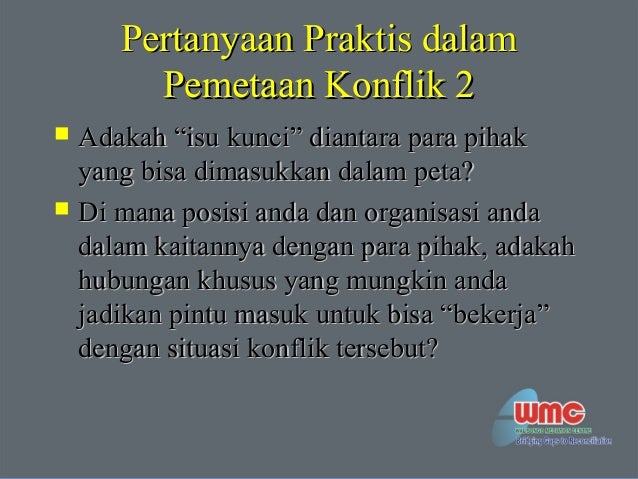 Contoh lainnya dari konflik yang relatif besar yakni antara karyawan dan manajemen. Kedua, konflik juga bisa terjadi mungkin hanya karena seseorang sedang mengalami hari yang buruk. Pertama, adanya perbedaan perasaan dan pendirian antar individu. Ada 3 (tiga) bentuk manajemen konflik. Tim hr sebagai punya andil besar dalam manajemen konflik perusahaan harus memberi kedua belah pihak kesempatan untuk berbagi sisi cerita mereka. Sedangkan karyawan (bawahan) membutuhkan informasi untuk melaksanakan pekerjaan, di samping itu juga informasi tentang jaminan keamanan, jaminan sosial, dan kesehatan. Konflik adalah bagian dari kehidupan berorganisasi yang tidak dapat dihindari. Kemudian adanya strategi manajemen konflik dapat meningkatkan organisasi dalam menangani konflik internal akan semakin kuat. Orang seperti ini membuat orang lain yang harus bertanggung jawb untuk menyelesaikan konflik. Kalau makin berarti berarti ada pihak yang kalah dalam konflik tersebut. Contoh soal dan pertanyaan pertanyaan yang ada ditulisan ini merupakan suatu bentuk rangkuman materi tentang konflik sosial yang sengaja kami buat dalam bentuk latihan soal pilihan ganda harapannya agar para siswa siswi dapat lebih mengerti dan memahami poin poin penting apa saja yang ada didalam bab konflik sosial khusus materi ips kelas xi ini. Penting untuk mendapatkan semua sisi cerita dari pihak yang terlibat. Tentunya banyak pertanyaan tentang manajemen konflik di benak kita.