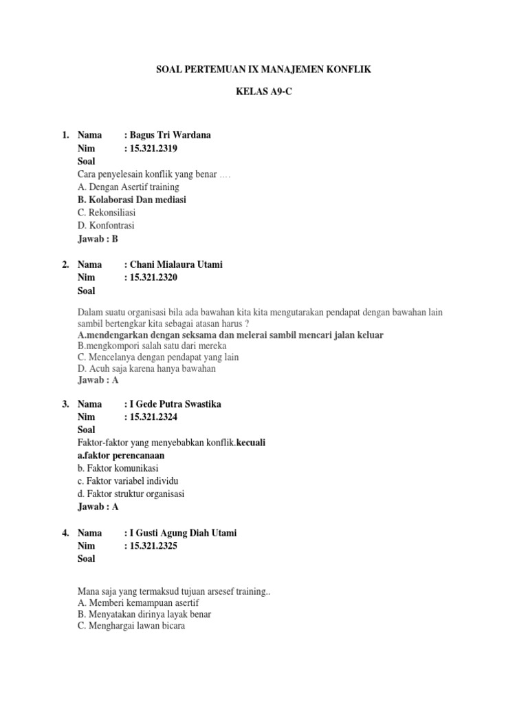 Pertanyaan Tentang Manajemen Konflik - Pertanyaan Tentang Manajemen Konflik - Saya yayang anggraini (1902040051) pada halaman 257 disebutkan memilih strategi mengatasi konflik.. Mekanisme atau manajemen konflik yang diambil pun sangat. Organisasi harus dapat mengelola konflik tersebut dengan ilmu manajemen konflik. Saya yayang anggraini (1902040051) pada halaman 257 disebutkan memilih strategi mengatasi konflik. Secara umum, faktor penyebab konflik ada beberapa macam. Oleh sebab itu, konflik pikiran akan selalu ada.