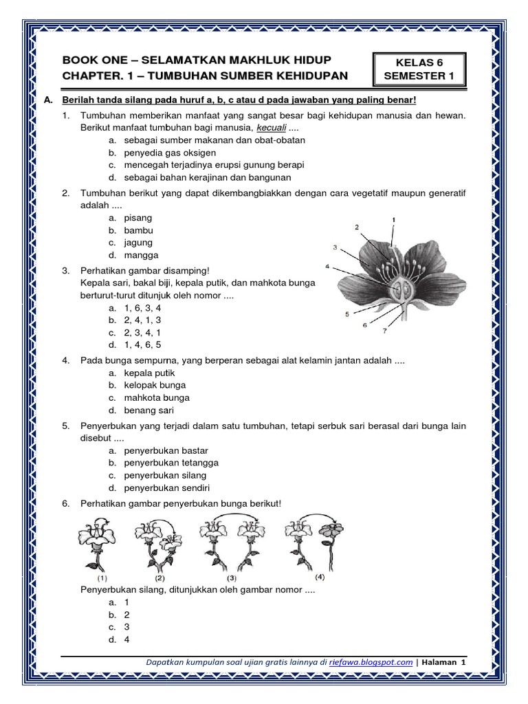 Kali ini rain asia menyediakan latihan soal untuk kelas 6 tema 1 subtema 1 tumbuhan sahabatku. Materi kelas 6 tema 1 subtema 1 tumbuhan sahabatku ini sudah sesuai dengan kd dan silabus yang ada. 1 rpp sd kelas 6 semester 1 selamatkan makhluk hidup www sekolahd. 25 jumlah soal isian singkat : Tidak, karena semua mahluk tuhan memiliki perbedaan.