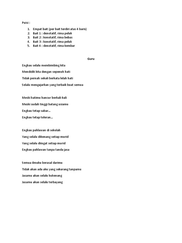 30 contoh puisi pendidikan pendek tentang sekolah, guru dan ilmu . Bersihkan dirimu dari debu yang mengganggu. Puisi tentang alam yang sederhana sehingga bisa . Puisi kemerdekaan di masa pandemi ini dapat digunakan untuk semua jenjang sekolah. Kini saatnya kita membuat puisi sekolah 4 bait terlebih dahulu.